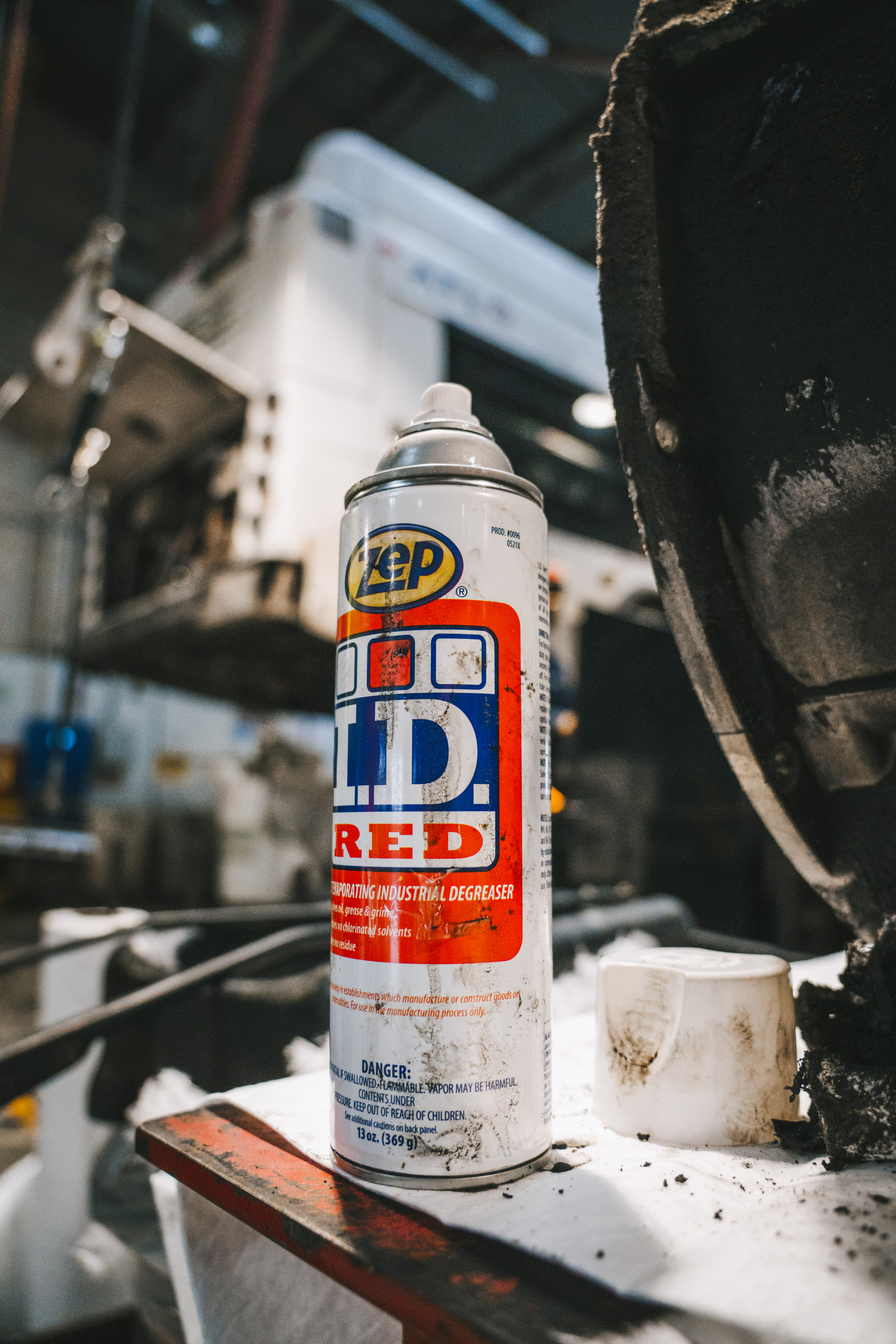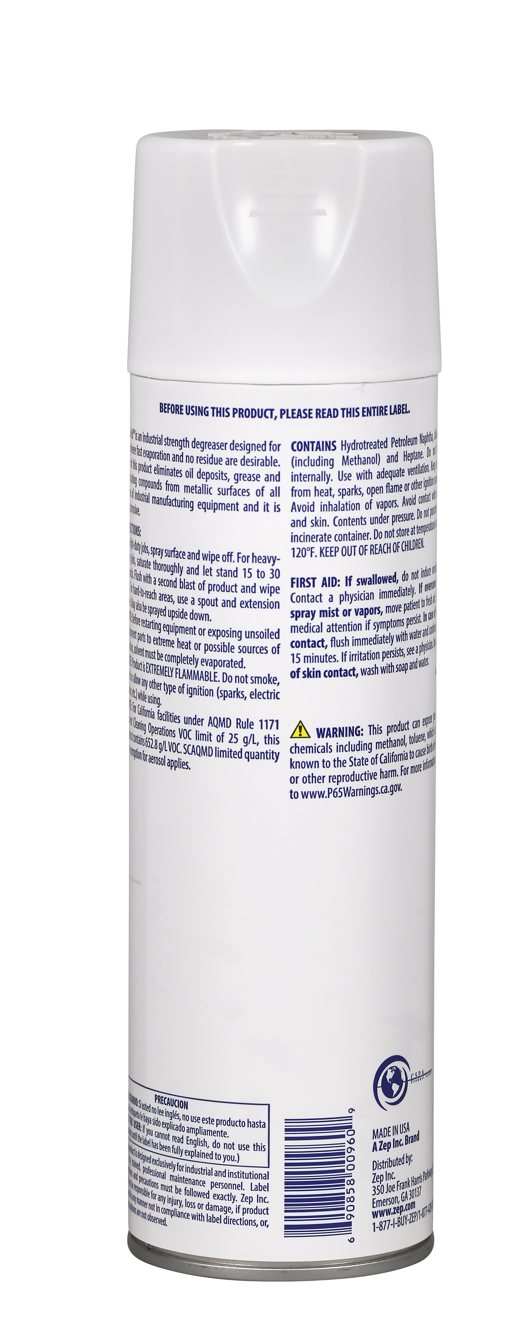 I.D. Red is an aerosol solvent degreaser designed for use when rapid evaporation and no residue are necessary. It is formulated without chlorinated solvents such as 1,1,1-trichloroethane, perchloroethylene or methylene chloride and contains no ingredients that corrode metal surfaces. Use to remove oil, grease, dirt, lubricants and tar from machinery parts, molds and equipment. The degreaser is perfect for automotive repair shops, HVAC contractors, textile companies, fabricated metal shops, cleaning and maintenance services, service stations and vehicle manufacturers. Its two-way valve allows use right-side-up and upside-down without propellant loss. Proposition 65: This product does not contain any chemicals known to State of California to cause cancer, birth defects, or any other reproductive harm.