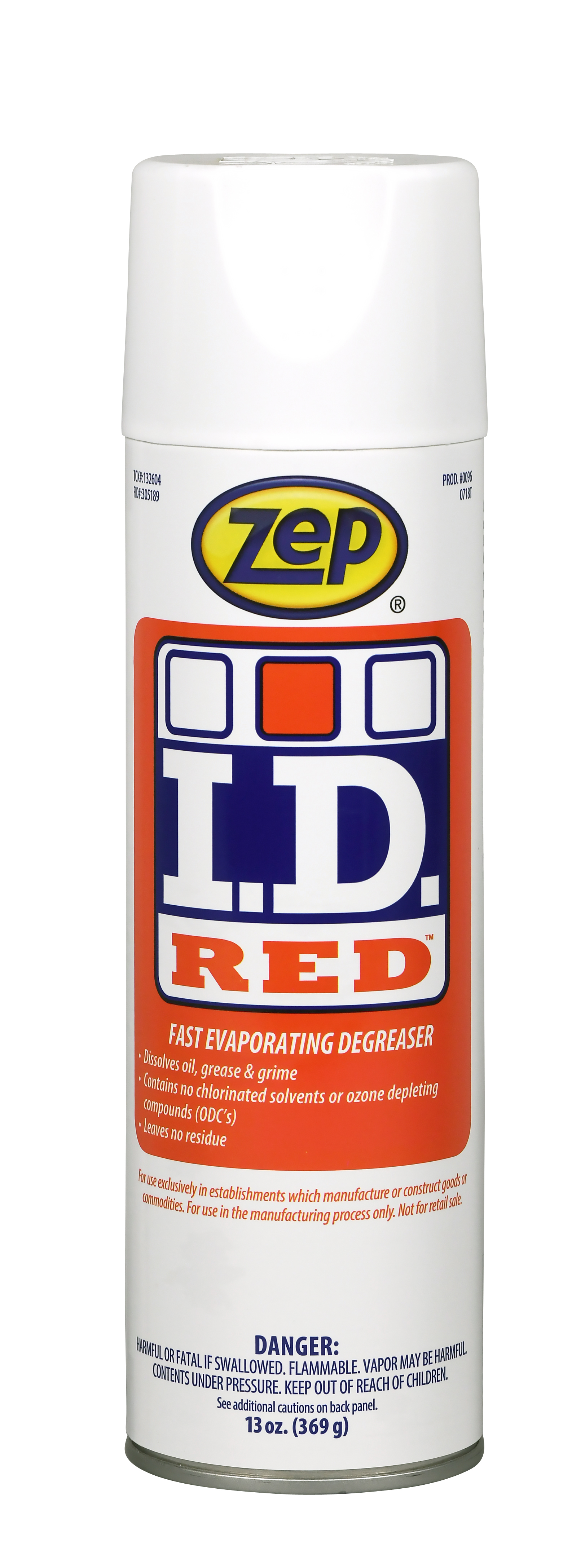 Zep I.D. Red is designed for use when extremely fast evaporation and no residue are desired. Use as an effective solvent degreaser alternative to 1,1,1-trichloroethane to remove oil, grease, tar, dirt, and lubricants.