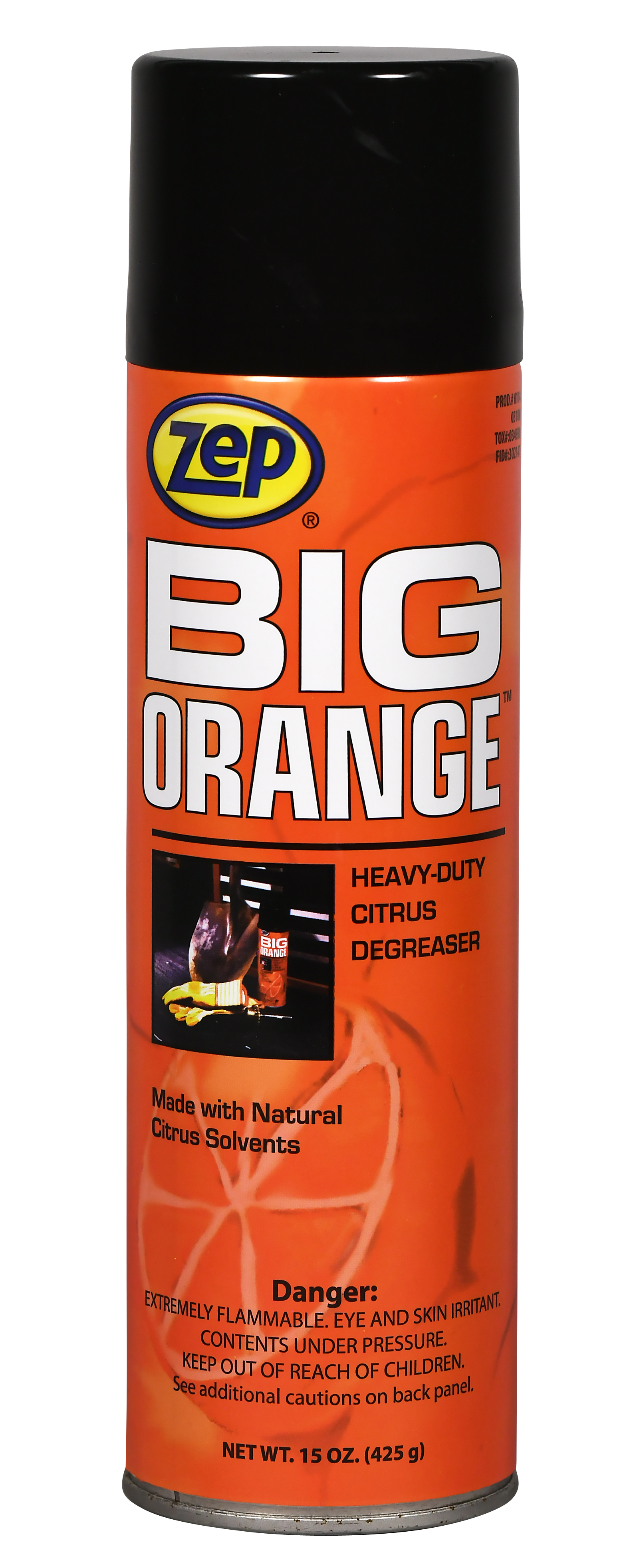 Big Orange (Aerosol) is a multi-use, heavy-duty, non-petroleum cleaning and degreasing aerosol. It contains 100 percent natural citrus solvents and no caustics, acids, petroleum distillates, chlorinated aromatic solvents or fluorocarbon propellants that deplete the ozone. The cleaner cuts through grease and soils in a comparable manner to petroleum distillates and chlorinated solvents, making it suited for use on molds, dies, unpainted concrete floors and industrial equipment. It will also dissolve many industrial-strength glues, protective coatings and tape and decal residues as well as emulsify tar and asphalt. Big Orange leaves behind a fresh, citrus fragrance with no petroleum solvent odor and is available in liquid form. All of its detergents and emulsifiers are biodegradable. Proposition 65: This product can expose you to chemicals including 7-methyl-3-methyleneocta-1,6-diene, 1,4-dioxane, ethylene oxide, which is/are known to the State of California to cause cancer, and ethylene oxide, which is/are known to the State of California to cause birth defects or other reproductive harm.