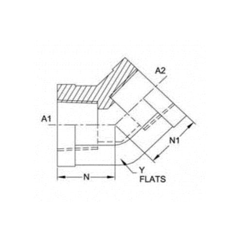 Brennan, 5505-04-04-FG, Hydraulic Elbow, Series: 5505-FG, 1/4 Nominal, Female NPTF End Style, 45 deg Angle, 0.750 in Hex, 6000 psi Pressure, Steel