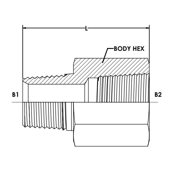 Brennan, 5405-12-12, Hydraulic Expander, Series: 5405, 3/4 Nominal, Male NPTF x Female NPTF End Style, 1.375 in Hex, 1.93 in Length, 4000 psi Pressure, Steel, 1.93 in L Dimensions
