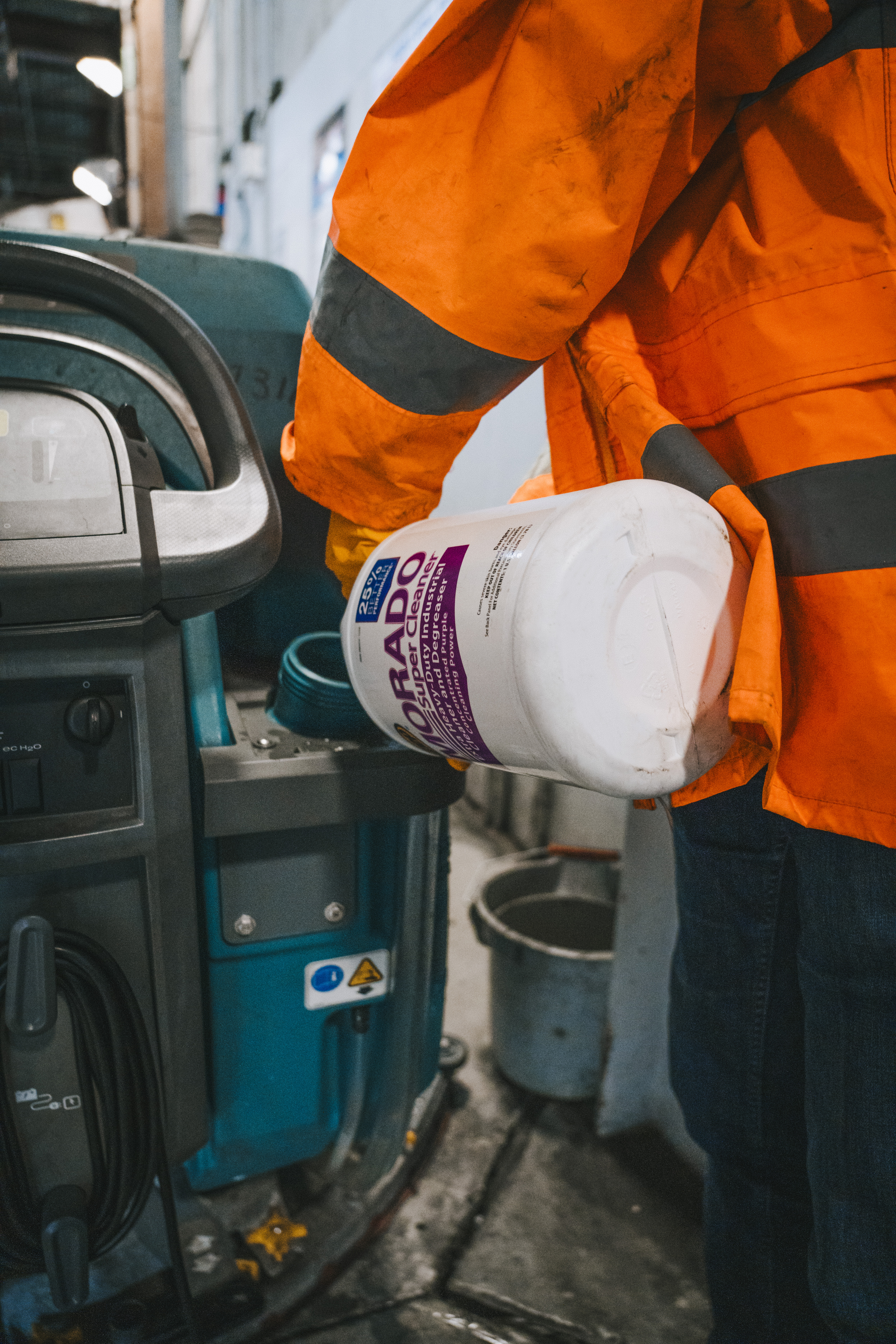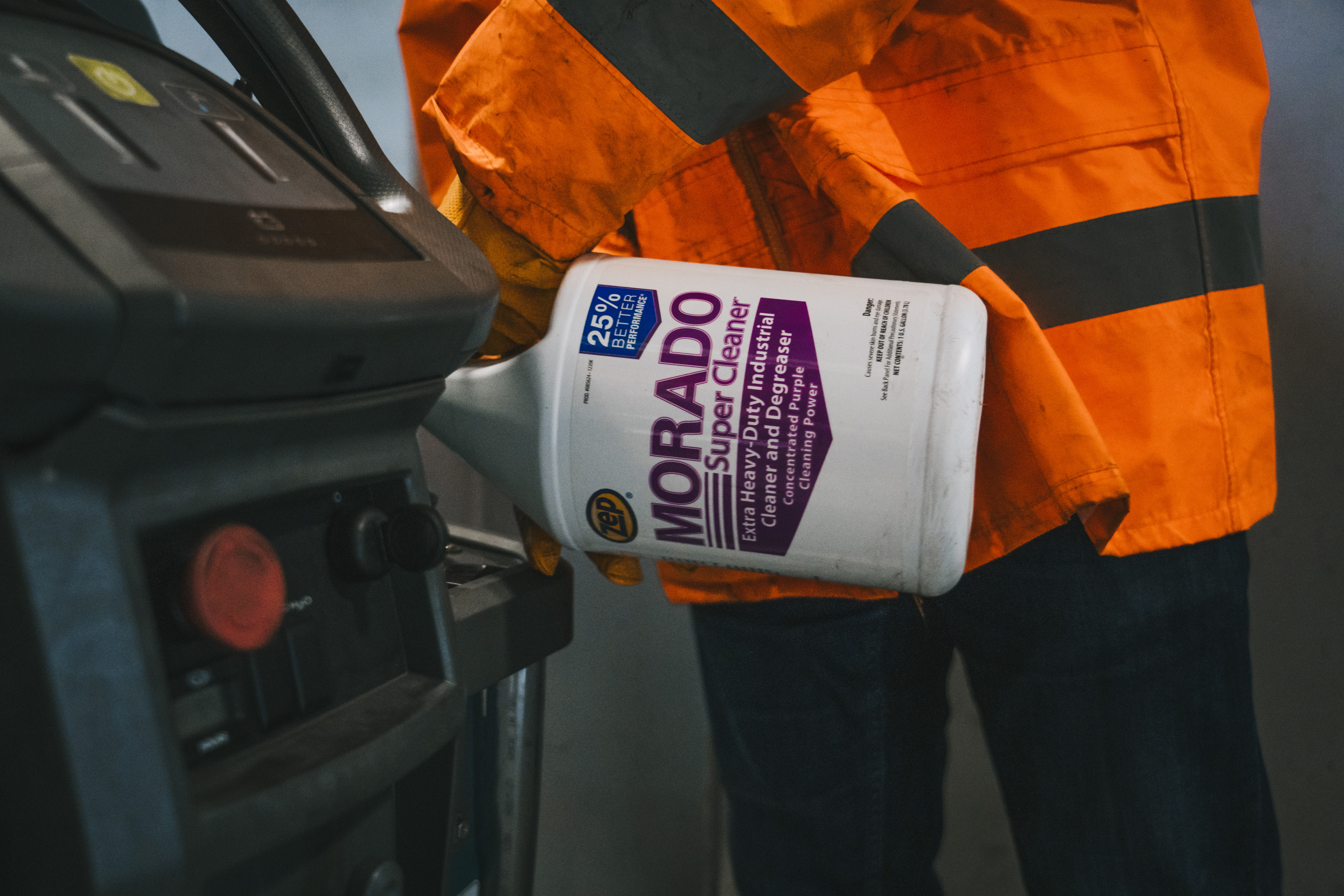 Morado Super Cleaner is a concentrated, alkaline cleaner and degreaser that quickly removes a wide variety of greasy and carbonaceous soils not readily penetrated by ordinary cleaning products. It contains no phosphates and all detergents used in the manufacture of this product are biodegradable. Use for extra heavy-duty industrial cleaning applications, including carbon, soot, ink, and grease removal. It cleans industrial concrete floors and other masonry surfaces, greasy engines and equipment. It is perfect for airport terminals, bus terminals, recreational clubs, automotive repair shops, car washes, cleaning and maintenance services, commercial printers, schools, manufacturing facilities, warehouses and service stations. Apply with a mop, brush, low-pressure spray or automatic scrubbing machine. Morado Super Cleaner is effective at high-dilution ratios. This product does not contain any chemicals known to State of California to cause cancer, birth defects, or any other reproductive harm.