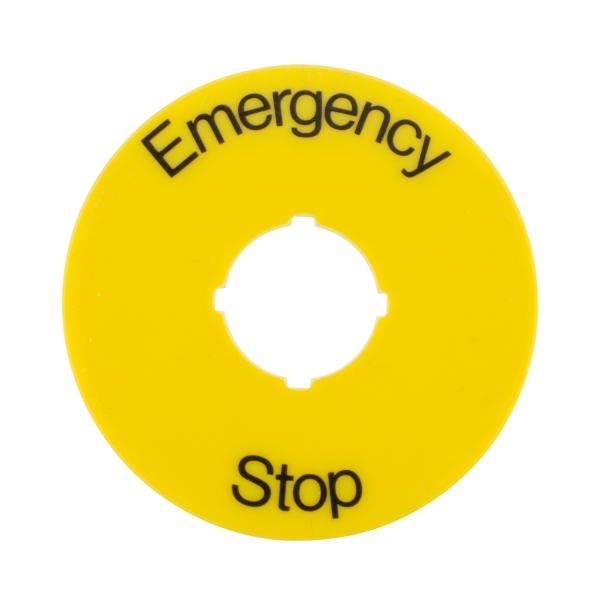 ABB Legend Plate, Series: KTC15, Emergency Stop Legend, Black Legend, 0.07 mm Height, 0.001 mm Width, Plastic, Yellow Field