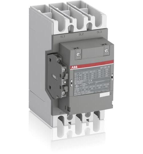 ABB Line Contactor, Non-Reversing, Series: AF Series, 100 to 250 VAC/VDC Coil, 250 A Maximum Load Current, 50 hp, 60 hp, 125 hp, 150 hp Coil, 3 Pole, 110/55/90/132 kW Wattage, 3NO Contact Configuration, 1NO-1NC Auxiliary Contacts, 275 A at 690 V Contact, AF190 Size, Screw Terminal, IP00/IP20 Enclosure, 5000000 Cycles Operating Cycles, -40 to 70 deg C Operating, 105 mm W x 152 mm D x 196 mm H Dimensions