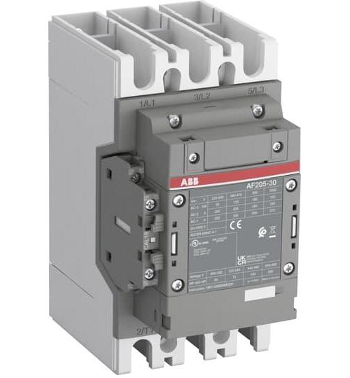 ABB, AF205-30-11-13, Contactor, Series: AF205, 100 VAC, 250 VDC Coil, 300 A Maximum Load Current, 3 Pole, 50/60 Hz Frequency, 160 kW Wattage, 3NO Contact Configuration, 1NO-1NC Auxiliary Contacts, 1000 VAC Contact, Screw Terminal, IP00/IP20 Enclosure, 300 Cycles Operating Cycles, -25 to 50 deg C Operating, DIN Rail Mounting, 196 mm H x 105 mm W x 152 mm D Dimensions
