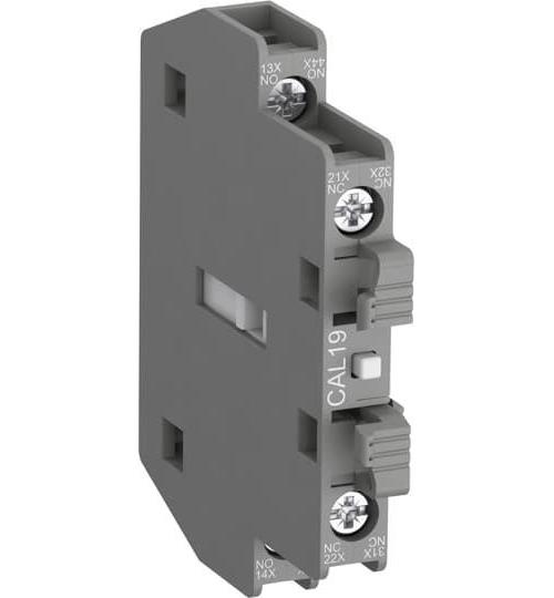ABB, CAL19-11, Auxiliary Contact Block, 690 VAC, 6 A, 2 Contacts, Side Mounting, For Use With: Model AF116/AF370 Block Contactors, 14.9 mm L x 79 mm W x 67.3 mm H Dimensions