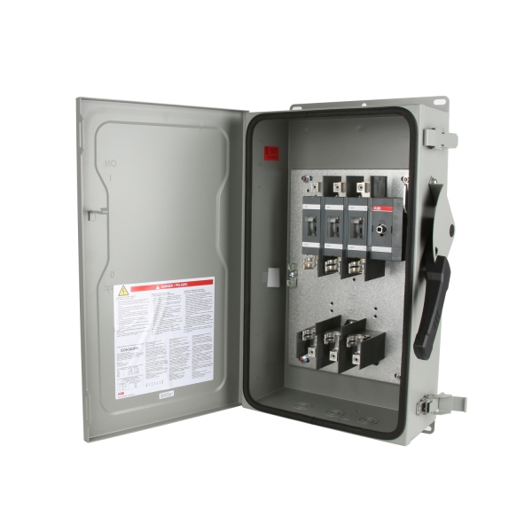 ABB EOH362RK Enclosed Heavy Duty Fusible Safety Switch With Concentric Knockout, 600 VAC, 60 A, 15 hp at 240 VAC, 30 hp at 480 VAC, 50 hp at 600 VAC, 2NO-2NC Contact, 3 Poles