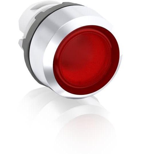 ABB Illuminated Pushbutton, Modular, 0.029 mm H x 0.029 mm W x 0.033 mm D Size, Momentary Contact Mode, LED Lamp, Bezel/Housing: Chrome Metal Bezel, Flush Button Actuator, Threaded Terminal, NEMA 1/3R/4/4X/12/13/IP66 Enclosure, Flush Mounting, Polycarbonate, Red, Environmental Conditions: -25 to 70 deg C Operating Temperature