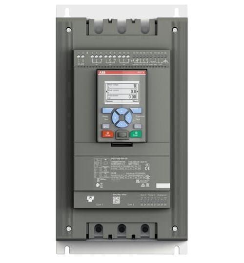 ABB, PSTX142-600-70, Series: PSTX, 208 to 600 VAC, 142 A, 50 to 60 Hz Frequency, 100 to 250 VAC Coil, 3 ph, In-Line Screw Connection, Built-In Electronic Overload Relay, NEMA 4X/IP66 Enclosure, Starting Modes: Start/Stop/Reset, -25 to 60 deg C Operating, 14.84 in H x 7.83 in W x 11.14 in D Dimensions