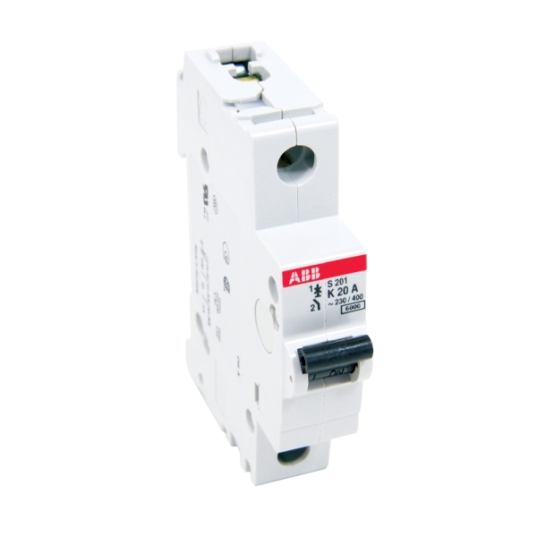 ABB System pro M compact® S201-K20 S200 High Performance Miniature Circuit Breaker, 277/480Y VAC, 60/110 VDC, 20 A, 6 kA Interrupt, 1 Poles, K-Curve/Electromechanic/Thermal Magnetic Trip