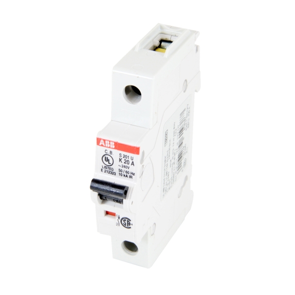 ABB S201U-K20 S200 High Performance Miniature Circuit Breaker, 240 VAC, 20 A, 10 kA Interrupt, 1 Poles, K-Curve/Thermal Magnetic Trip