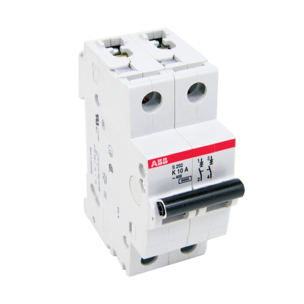 ABB System pro M compact® S202-K10 S200 High Performance Miniature Circuit Breaker, 277/480Y VAC, 60/110 VDC, 10 A, 6 kA Interrupt, 2 Poles, K-Curve/Electromechanic/Thermal Magnetic Trip