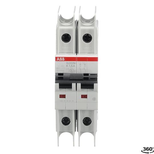 ABB, SU202M-K1.6, Miniature Circuit Breaker, High Performance, Series: SU200M, 277/480Y VAC, 48/96 VDC, 1.6 A, 50/60 Hz Frequency, 10 kA Interrupt, K-Curve Trip, 2 Pole, Screw Connection, 18 to 4 AWG Wire, IP20/IP40 Enclosure, DIN Rail Mounting, -25 to 55 deg C, 69 mm L x 35 mm W x 111 mm H Dimensions, Light Gray
