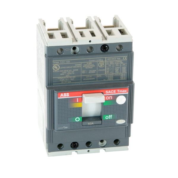 ABB Tmax T2H050TW Molded Case Circuit Breaker, 480 VAC, 50 A, 65 kA Interrupt, 3 Poles, Thermal/Magnetic Trip