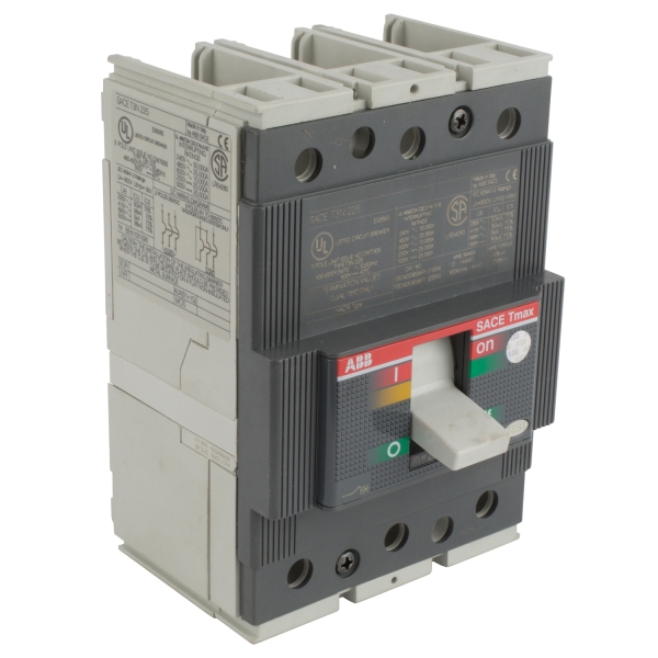 ABB Tmax Molded Case Circuit Breaker, Normal Interrupt, 480 VAC/500 VDC, 200 A, 50/60 Hz Frequency, 25 kA Interrupt, T3-225A Frame, Thermal/Magnetic Trip, 0 to 2000 A Trip, 3 Pole, 3 ph, Toggle Actuator, Bolt-On Connection, 14 AWG to 300 kcmil Wire, Panel Mounting, 5.9 in H x 4.13 in W x 2.76 in D Dimensions