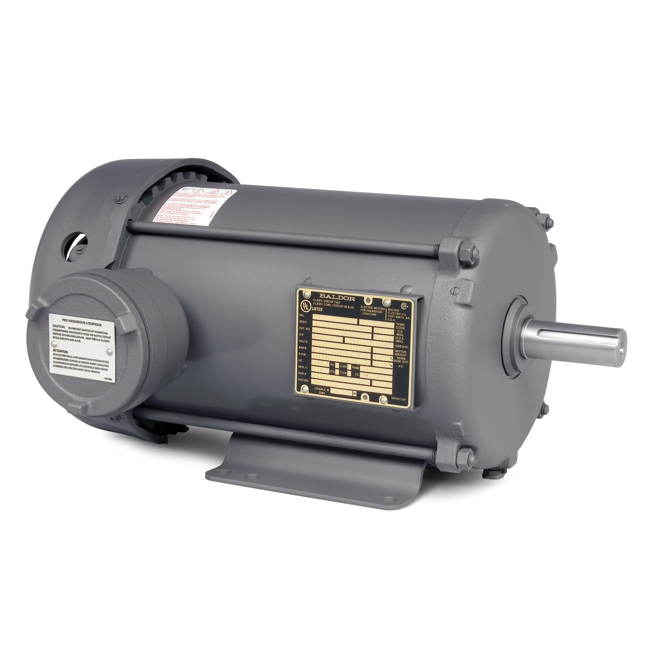 Baldor-Reliance EM7045T-I Continuous/Drill Rig Duty Type 3728M AC Motor, XPFC Enclosure, 5/7.5 hp, 190/208/230/380/460 VAC, 50/60 Hz, 3 ph Phase, 213T Frame, 3520/2930 rpm Speed, Foot Rigid Mount