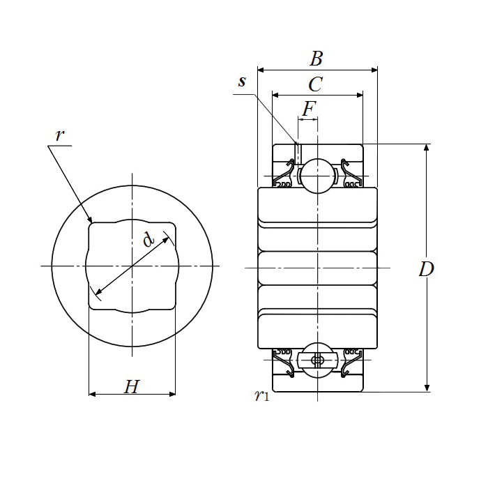 BCA® DC208TTR17 DC Series Type 6 Square Bore Farm Implement Bearing, Cylindrical Bearing, 29.972 mm Dia Bore, 85.738 mm OD, 36.5 mm W, 29100 N Load