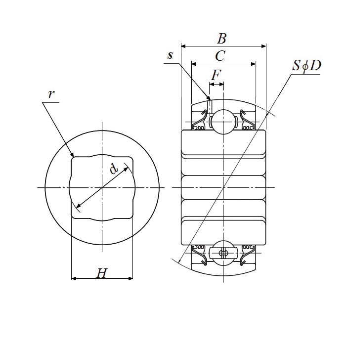 BCA® DS208TT9 DS Series Type 2 Square Bore Farm Implement Bearing, Spherical Bearing, 26.162 mm Dia Bore, 80 mm OD, 36.5 mm W, 29100 N Load