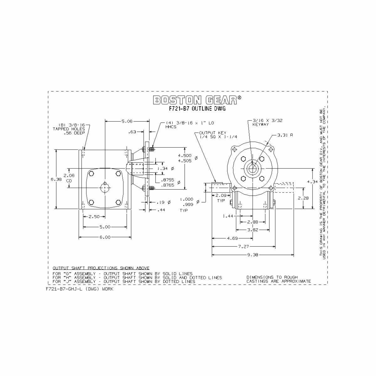 Boston Gear® Right Angle Helical Worm Gear Drive, Single Reduction, Series: 700, 15:1 Gear Ratio, 1.72 hp Input/1.56 hp Output/1.5 hp Motor, Quill Flange Input, Solid Projecting Shaft Output, 7/8 in Input, 1 in Output, 116.7 rpm Output Maximum Speed, 1750 rpm Input Maximum Speed, 841 in-lb, 2.06 in Centre Distance, 3/16 x 3/32 in Keyway, 0.9 % Efficiency, Klubersynth UH1 6-460 Lubrication, No Base Mount, Cast Iron, Standard Gray Painted, 6 in L x 7.28 in W x 6.38 in H
