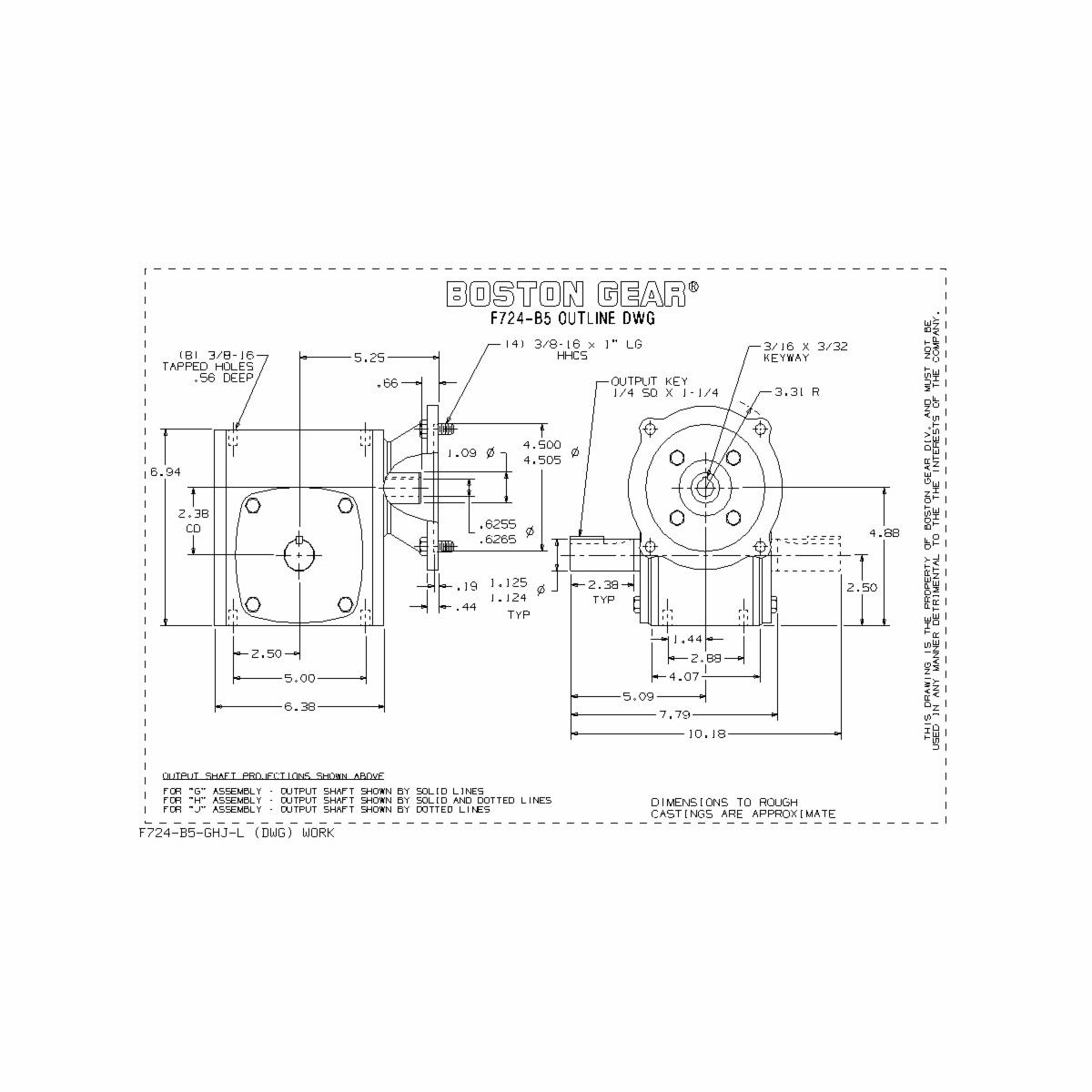 Boston Gear® F724-60-B5-G 700 Single Reduction Right Angle Helical Worm Gear Drive, Quill Flange Input, Solid Projecting Shaft Output, 0.73 hp Input/0.52 hp Output/0.75 hp Motor, 60:1 Gear Ratio, 29.2 rpm Maximum Output, 1128 in-lb Torque Rating