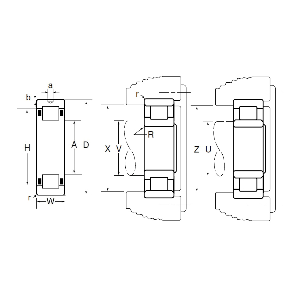Cylindrical roller bearings are manufactured by NTN Bower® in several series that differ in proportion, width, and load rating. Bore size for each series increases in multiples of five or more millimeters and for each bore size a selection of different narrow and wide series is available to meet the needs of most applications. External dimensions and tolerances conform to RBEC 1 metric bearing standards as defined in the American Bearing Manufacturers Association (ABMA) and American National Standards Institute (ANSI). NTN Bower® standard product lines include two basic series the M series for light and medium radial loads and the W series for heavy to extra heavy radial loads. Only complete bearing assemblies interchange between the Max-Pak and the M series bearings separable rings and roller assemblies do not.