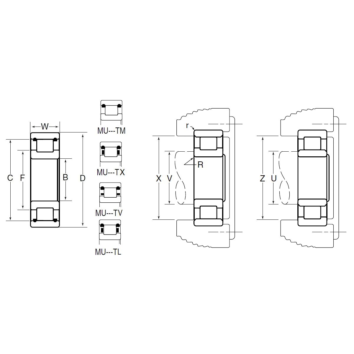 Cylindrical roller bearings are manufactured by NTN Bower® in several series that differ in proportion, width, and load rating. Bore size for each series increases in multiples of five or more millimeters and for each bore size a selection of different narrow and wide series is available to meet the needs of most applications. External dimensions and tolerances conform to RBEC 1 metric bearing standards as defined in the American Bearing Manufacturers Association (ABMA) and American National Standards Institute (ANSI). NTN Bower® standard product lines include two basic series the M series for light and medium radial loads and the W series for heavy to extra heavy radial loads. Only complete bearing assemblies interchange between the Max-Pak and the M series bearings separable rings and roller assemblies do not.