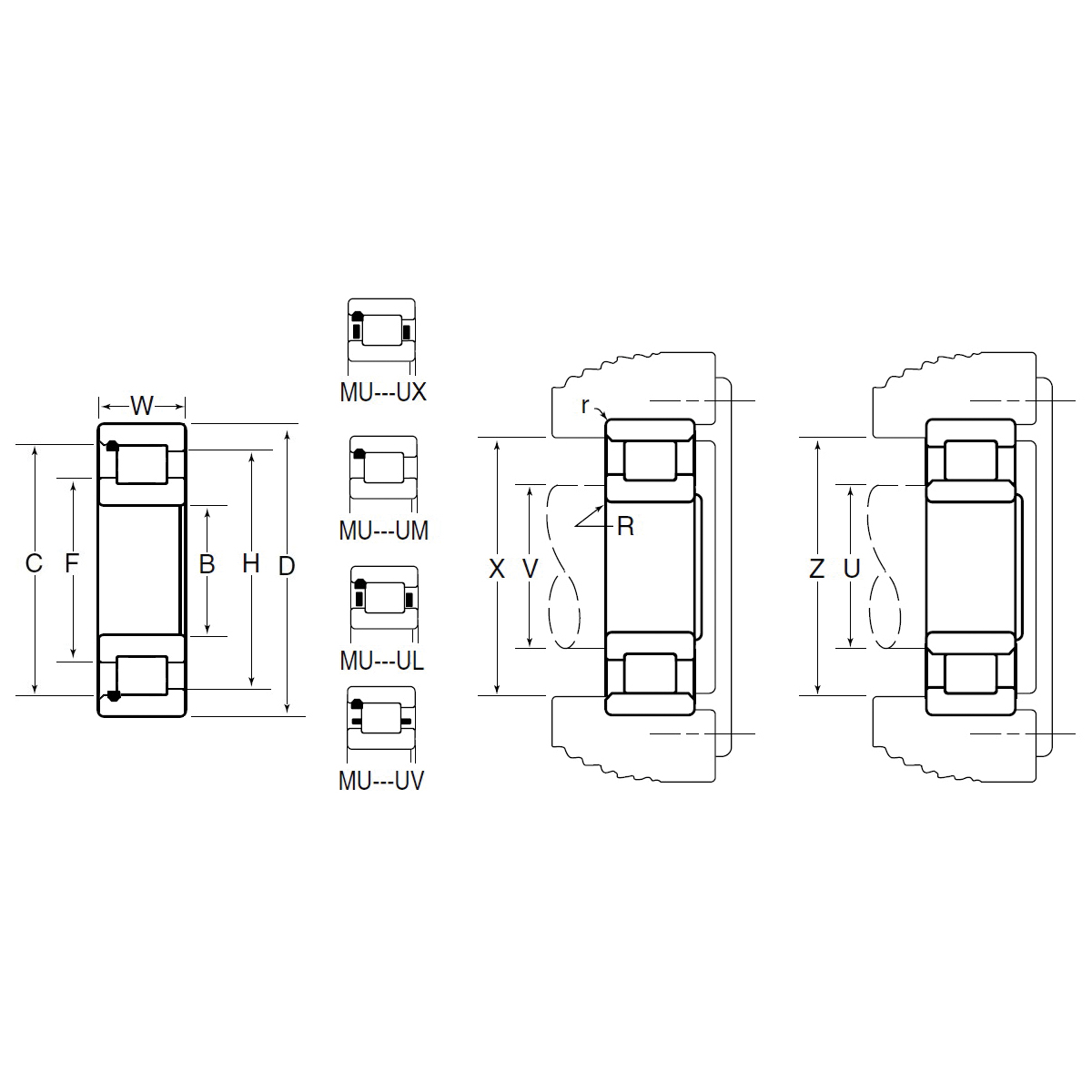 Cylindrical roller bearings are manufactured by NTN Bower® in several series that differ in proportion, width, and load rating. Bore size for each series increases in multiples of five or more millimeters and for each bore size a selection of different narrow and wide series is available to meet the needs of most applications. External dimensions and tolerances conform to RBEC 1 metric bearing standards as defined in the American Bearing Manufacturers Association (ABMA) and American National Standards Institute (ANSI). NTN Bower® standard product lines include two basic series the M series for light and medium radial loads and the W series for heavy to extra heavy radial loads. Only complete bearing assemblies interchange between the Max-Pak and the M series bearings separable rings and roller assemblies do not.