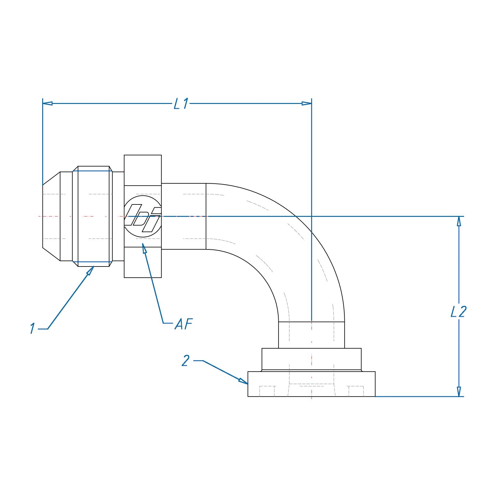 Brennan, 1704-20-20, Flanged Pipe Elbow, Series: 1704, 1 1/4 Nominal, Male JIC Flare x Flange End Style, 90 deg Angle, Steel