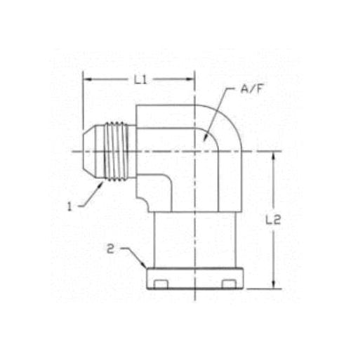 Brennan, 1804-16-20-FG, Flanged Pipe Elbow, Series: 1804-FG, 1 x 1 1/4 Nominal, Male JIC Flare x Flange End Style, 90 deg Angle, Steel