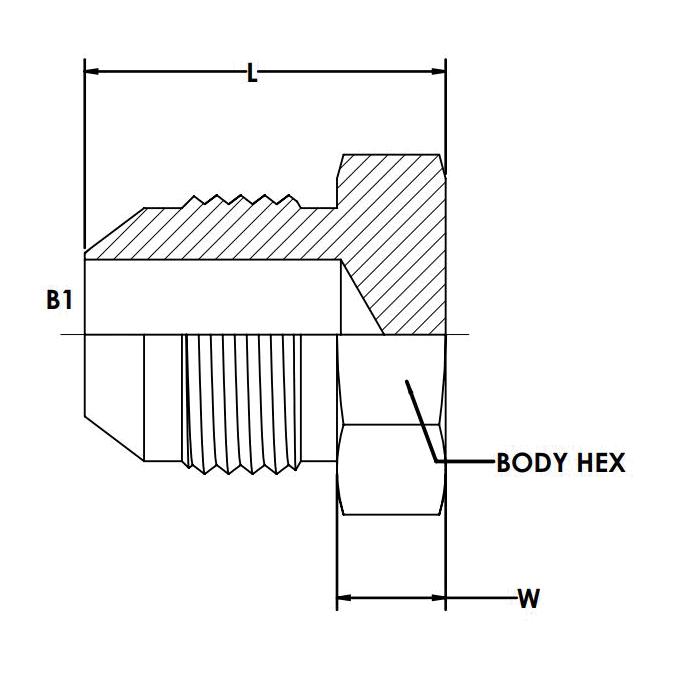 Brennan, 2408-05, Hydraulic Plug, Series: 2408, 5/16 Nominal, Male JIC Flare End Style, 0.562 in Hex, 0.800 in Length, 6000 psi Pressure, Steel, 0.800 in L Dimensions
