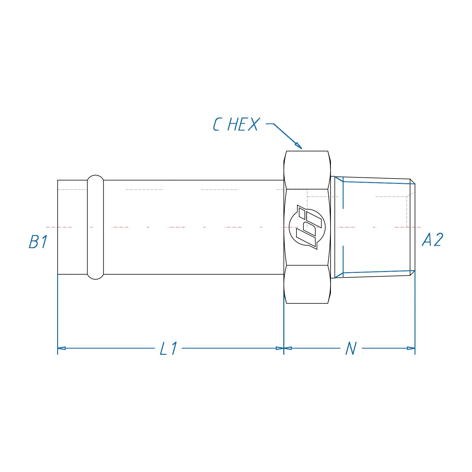 Brennan, 4404-12-16, Hydraulic Adapter, Series: 4404, 3/4 x 1 Nominal, Hose Barb x Male NPTF End Style, 1.375 in Hex, 2.86 in Length, Steel, 2.86 in L Dimensions