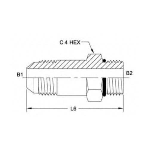 Brennan, 6400-L-08-08-O, Hydraulic Adapter, Long, Series: 6400-L-O, 1/2 Nominal, Male JIC Flare x Male O-ring Boss End Style, 0.875 in Hex, 2.70 in Length, 6000 psi Pressure, Steel, 2.70 in L Dimensions