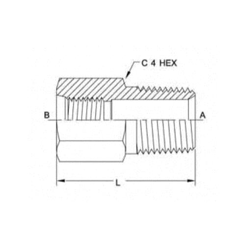 Brennan, 6404-06-06, Hydraulic Adapter, Series: 6404, 3/8 Nominal, Female O-ring Boss x Male NPTF End Style, 0.812 in Hex, 1.380 in Length, 6000 psi Pressure, Steel, 1.380 in L Dimensions