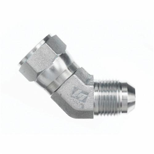 Brennan Tube Elbow, Series: 6502, Fitting/Connector Type: 45 deg Elbow, 1-5/16-12 x 1-5/16-12 Nominal, 37 deg Male JIC Flare x 37 deg Female JIC Flare Swivel, 1-1/2 in Hex, 3600 psi, Steel, 3.22 in L, Forged