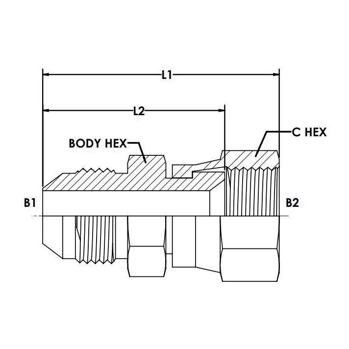 Brennan, 6504-06-04, Hydraulic Adapter, Series: 6504, 3/8 x 1/4 Nominal, Male JIC Flare x Female JIC Swivel End Style, 0.625 x 0.563 in Hex, 1.160 in Length, Steel, 1.160 in L Dimensions