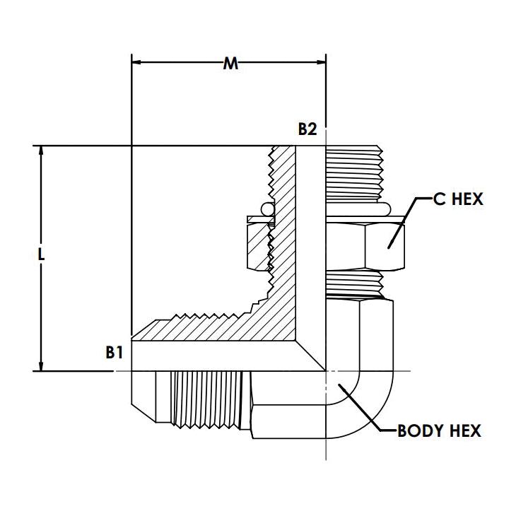Brennan, 6801-12-08-NWO-FG, Hydraulic Elbow, Series: 6801-NWO-FG, 3/4 x 1/2 Nominal, Male JIC Flare x Male O-Ring Boss End Style, 90 deg Angle, 1.062 x 0.875 in Hex, 5000 psi Pressure, Steel