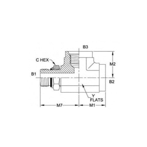 Brennan, 6835-06-06-06-NWO-FG, Hydraulic Tee, Series: 6835-NWO-FG, 3/8 Nominal, Female O-ring Boss x Male Adjustable O-ring Boss End Style, 0.688 in Hex, 2.13 in Length, Steel, 2.13 in L Dimensions