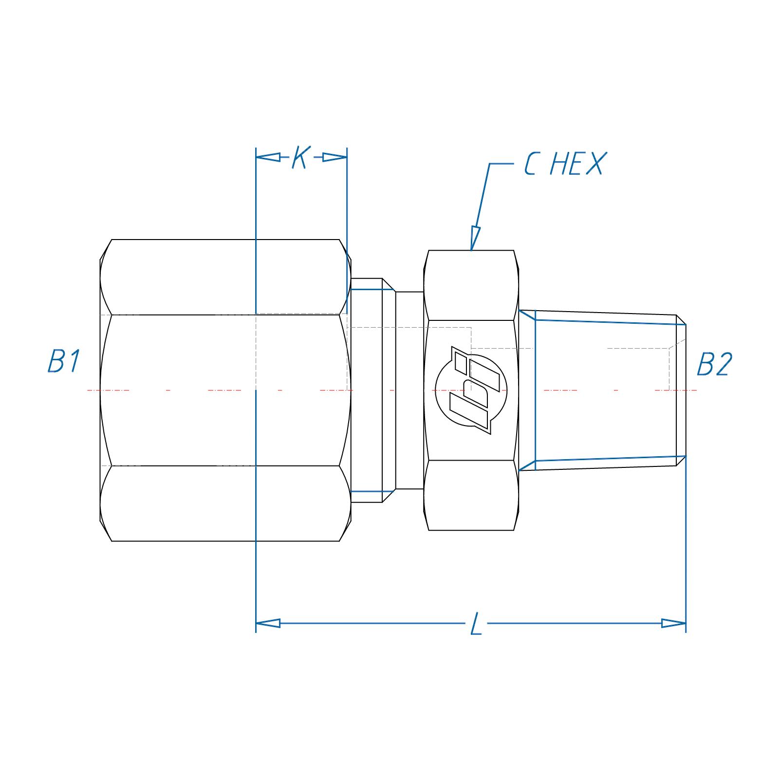 Brennan, C2404-08-12, Hydraulic Adapter, Series: C2404, 1/2 x 3/4 Nominal, Bite Type x Male NPTF End Style, 1.125 in Hex, Steel Compressi