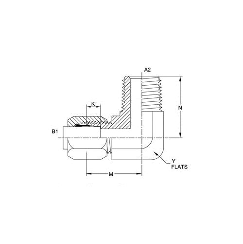 Brennan, C2501-10-06-FG, Hydraulic Elbow, Series: C2501-FG, 5/8 x 3/8 Nominal, Bite Type x Male NPTF End Style, 90 deg Angle, 7/8 in Hex, 2.7 in Length, Steel, 2.7 in L Dimensions