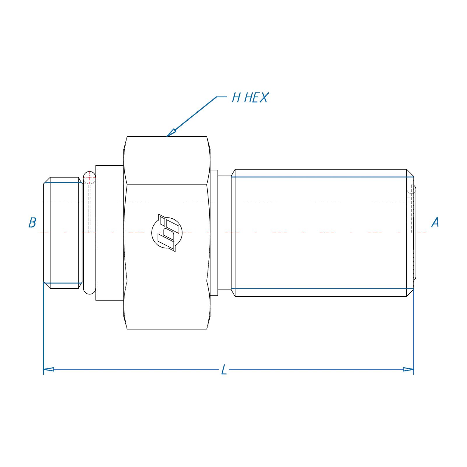 Brennan, FS2764-08-08-O, Hydraulic Bulkhead Fitting, Series: FS2764, 1/2 Nominal, Male Face Seal x Male O-ring Boss End Style, 1.125 in Hex, 2.600 in Length, Steel, 2.600 in L Dimensions