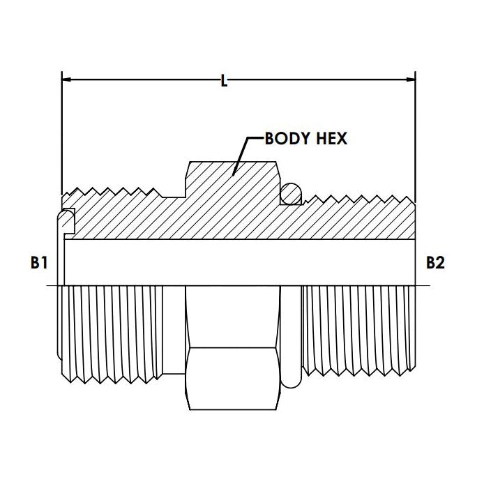 Brennan, FS6400-04-08-O, Hydraulic Adapter, Series: FS6400-O, 1/4 x 1/2 Nominal, Male Face Seal x Male O-ring Boss End Style, 0.875 in Hex, 1.321 in Length, 6000 psi Pressure, Steel, 1.321 in L Dimensions