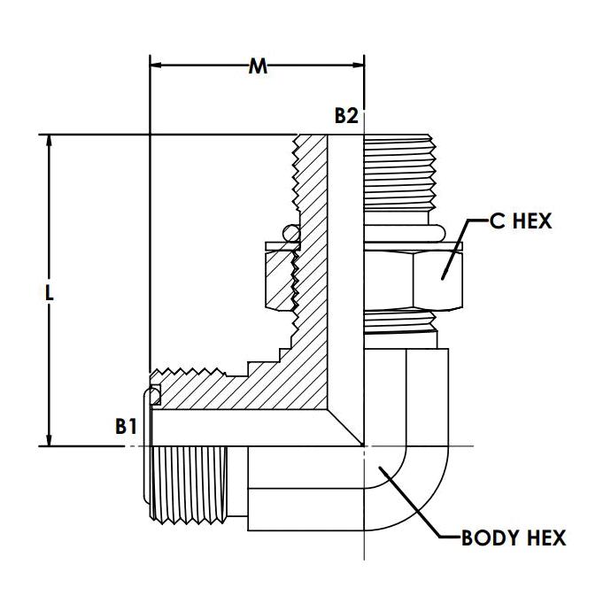 Brennan, FS6801-20-20-NWO-FG, Hydraulic Elbow, Series: FS6801-NWO-FG, 1 1/4 Nominal, Male Face Seal x Male Adjustable O-ring Boss End Style, 90 deg Angle, 1.875 in Hex, 4000 psi Pressure, Steel