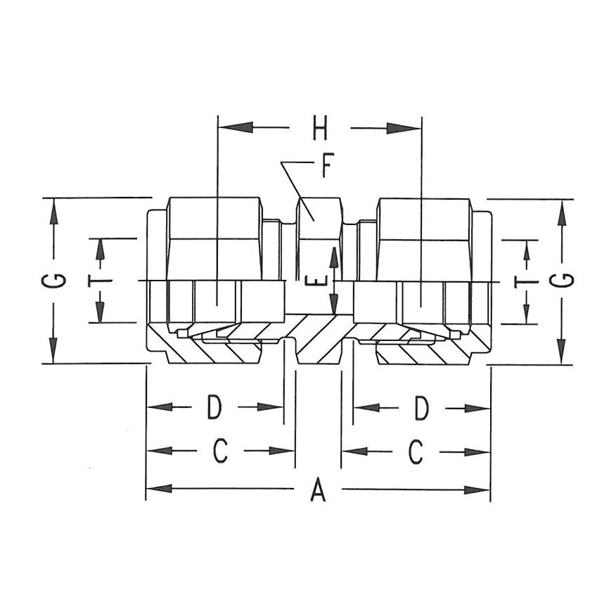 Brennan, N2403-06-06-SS, Hydraulic Ferrule, Series: N2403, 3/8 Nominal, Tube End Style, 16 x 17.5 mm Hex, 46.7 mm Length, Stainless Steel, 46.7 mm L Dimensions