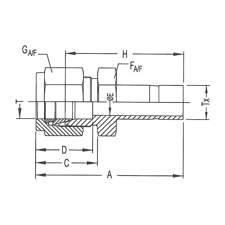 Brennan, N2406-04-02-SS, Hydraulic Ferrule, Series: N2406, 1/4 x 1/8 Nominal, Tube x Std Pipe End Style, 14 x 14 mm Hex, 36.8 mm Length, Stainless Steel, 36.8 mm L Dimensions