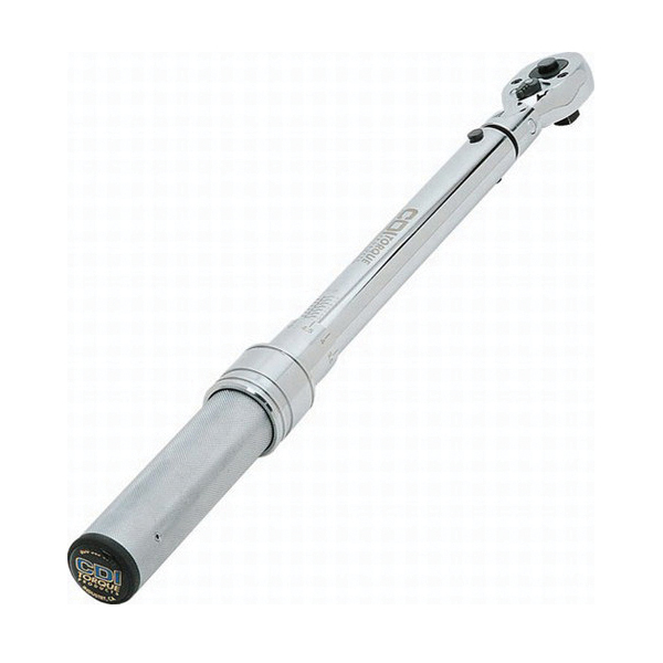 CDI Torque Products® Micrometer Torque Wrench, Adjustable Single Scale, 3/8 in Drive, 10 to 80 ft-lb Torque, Flexible Head, Graduations: 0.5 ft-lb, 16.6 in Overall Length, CW/CCW Rotation, +/-4%, +/-6% Accuracy, 5000 Cycles Minimum, Audible Click Indicator, Lightly Knurled/Non-Slip Grip Handle, Specifications Met: ASME Specified, Steel