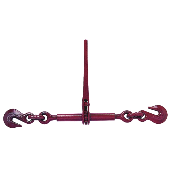 Crosby L-140 Ratchet Type Load Binders are ideal for tightening tie down chains used to secure cargo for transport. The R-C version can be used with grades 70, 80, and 1/2" grade 100 chain, and utilizes two standard Crosby A-323 Alloy Eye Grab Hooks. The one-piece forged handle design eliminates bolts and nuts that can loosen. The binder utilizes an easy-operating positive ratchet, and the continuous take-up feature provides finite adjustment for securing the load. The ratchet spring is rust proofed and all load bearing or holding parts are forged. Binders have been individually proof tested to two times the WLL, and meet or exceed requirements of US DOT FMCSA Part 393 Subpart I. Made in the U.S.A.
