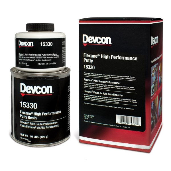 Devcon® Flexane® 15330 High Performance Putty Curing Agent/Resin, 1 lb Kit, Liquid Form, Mobil Black/Clear Yellow, 1.05/0.99