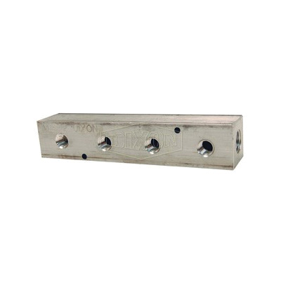 Dixon® Bar Manifold, 4 Outlets, 3/8 in NPT Outlet, 1 Inlet, 1/2 in NPT Inlet, 300 psi, Aluminum, 8 in L x 1-1/2 in W, Domestic