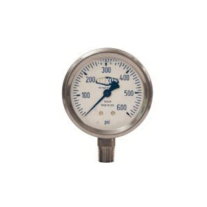 Dixon® Gauge, 0 to 600 psi, 1/4 in NPT, 2-1/2 in Dial Diameter, +/- 3-2-3 % Accuracy, Liquid Filled: Glycerin, -4 to 140 deg F, Lower Mount, Stainless Steel Case