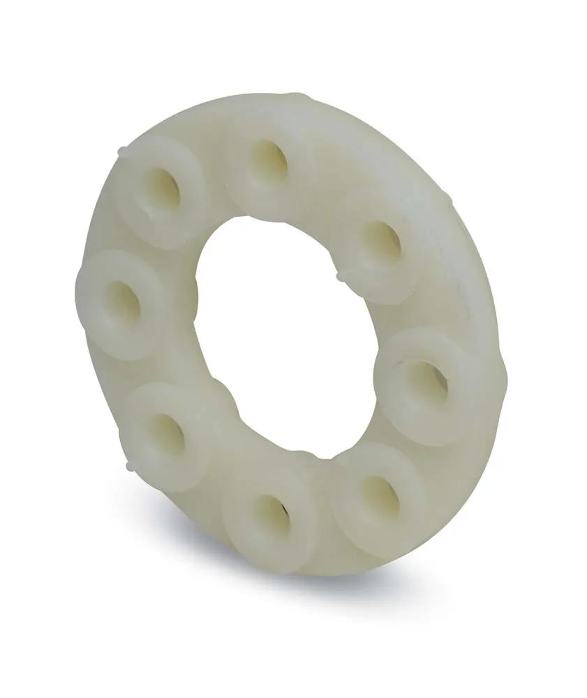 The Dodge® Poly-Disc® coupling features a molded polyurethane disc that helps cushion shock loads and resists chemical attack. Easily assembled, the flexible Poly-Disc® element utilizes spacer buttons to quickly set correct flange spacing, while the fully machined flanges utilize standard Taper-Lock® bushings for easy installation and removal. The Poly-Disc® coupling requires no lubrication or periodic maintenance, ensuring worry-free operation.